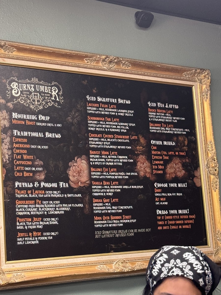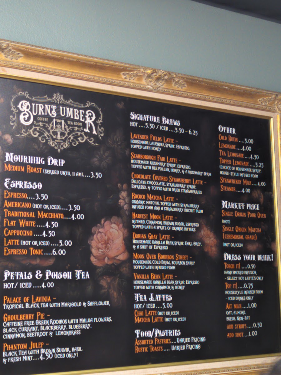Welcome to Burnt Umber Coffee ft. Petals & Poison Tea Room, a unique destination nestled in Garden Grove, CA. This charming café combines gothic aesthetics with exceptional coffee and delightful bites. The inviting atmosphere greets you as you step inside, making it feel like home from the start.